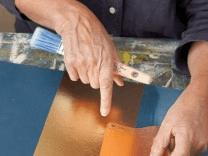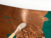 Loose leaf is more affordable than transfer and is perfect for most gilding purposes. It's particularly good for carved surfaces. We offer leaf metal in Brass, Aluminium and Copper. Use the leaf with hands lightly dusted with talcum powder and stick the leaf on to a surface coated with Annie Sloan Gold Size.