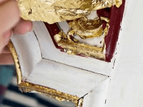 Brass leaf is also known as 'Imitation Gold' or sometimes referred to as 'Dutch Gold'. Brass tarnishes so apply a layer of Clear Chalk Paint® Wax over your gilded surface when done.