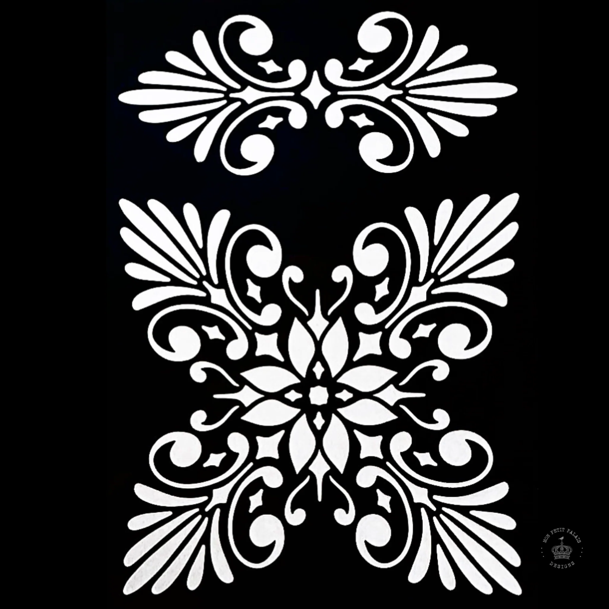 Imagine running your hand across a beautifully detailed dresser front, admiring the ornate floral corners you've just created. This A4 stencil brings the romance of 18th-century French design to your furniture, walls, tiles, and fabric projects with effortless precision.