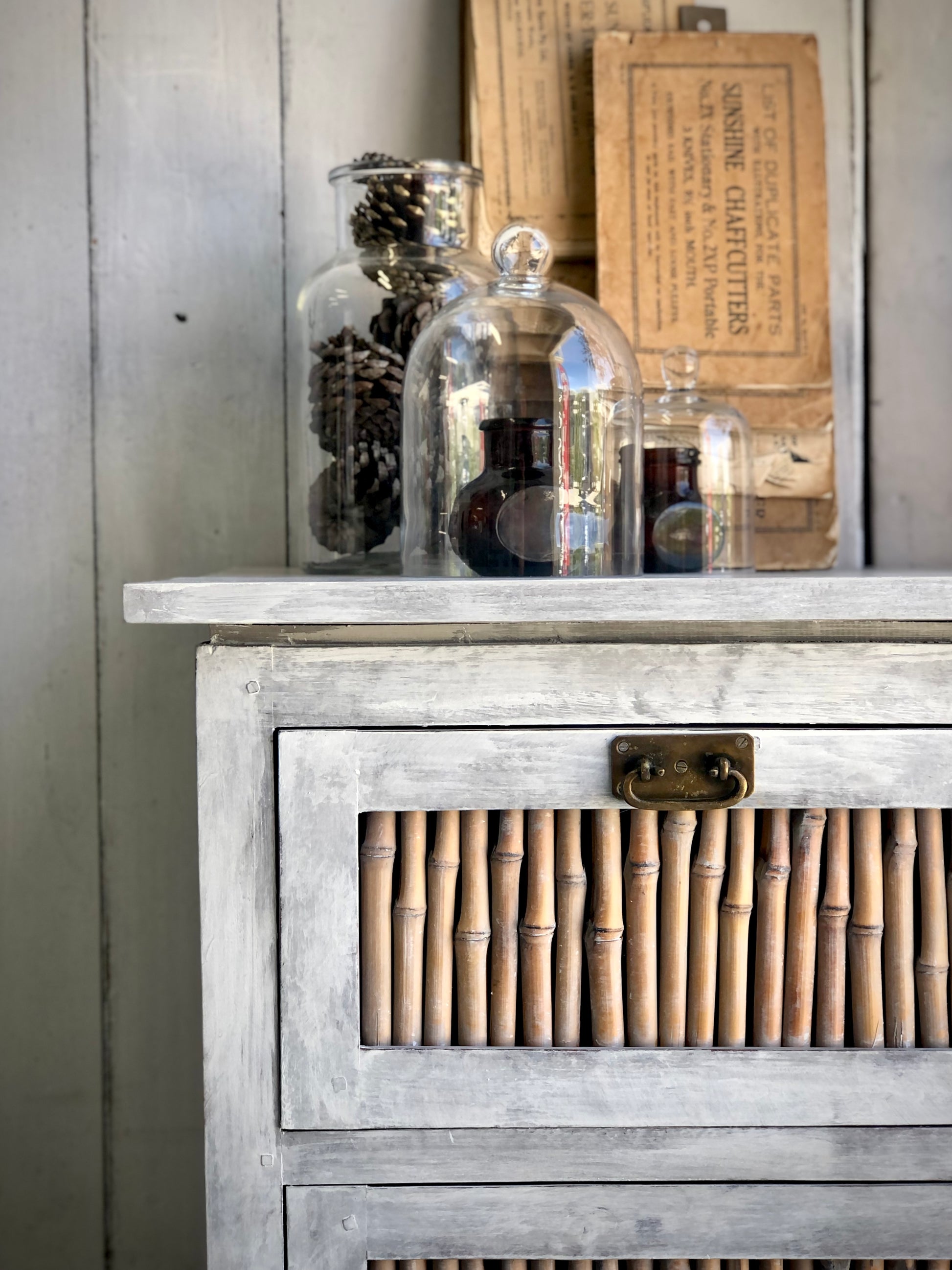 Hand painted with Annie Sloan Chalk Paint in French Linen, and Old White for a bleached coastal feel. White wax to finish.