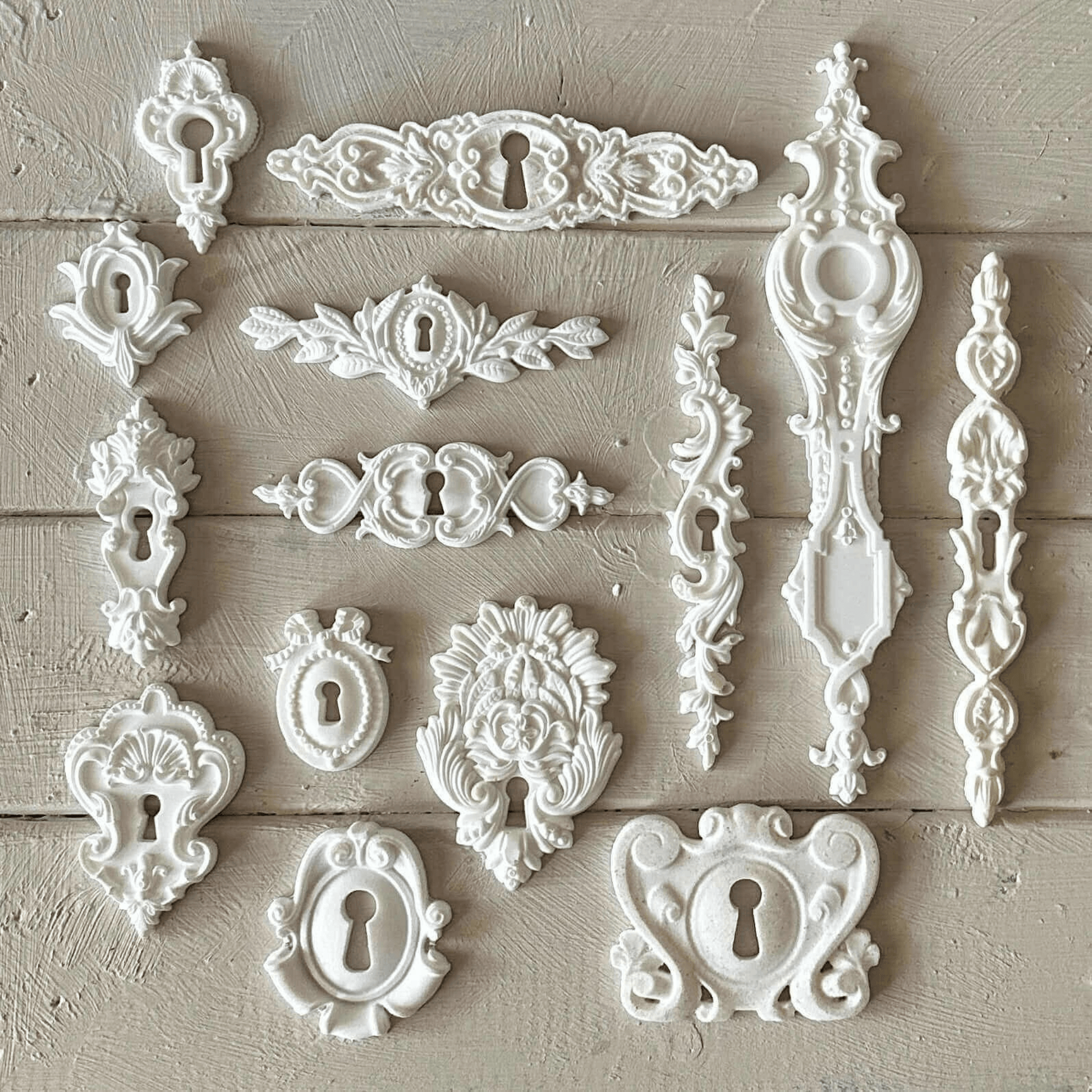 Add a refined vintage touch to your furniture with the Keyhole 010 applique, crafted from durable resin and designed for creative flexibility. Featuring an ornate silhouette, this escutcheon is perfect for drawers, cabinets, and upcycled décor.