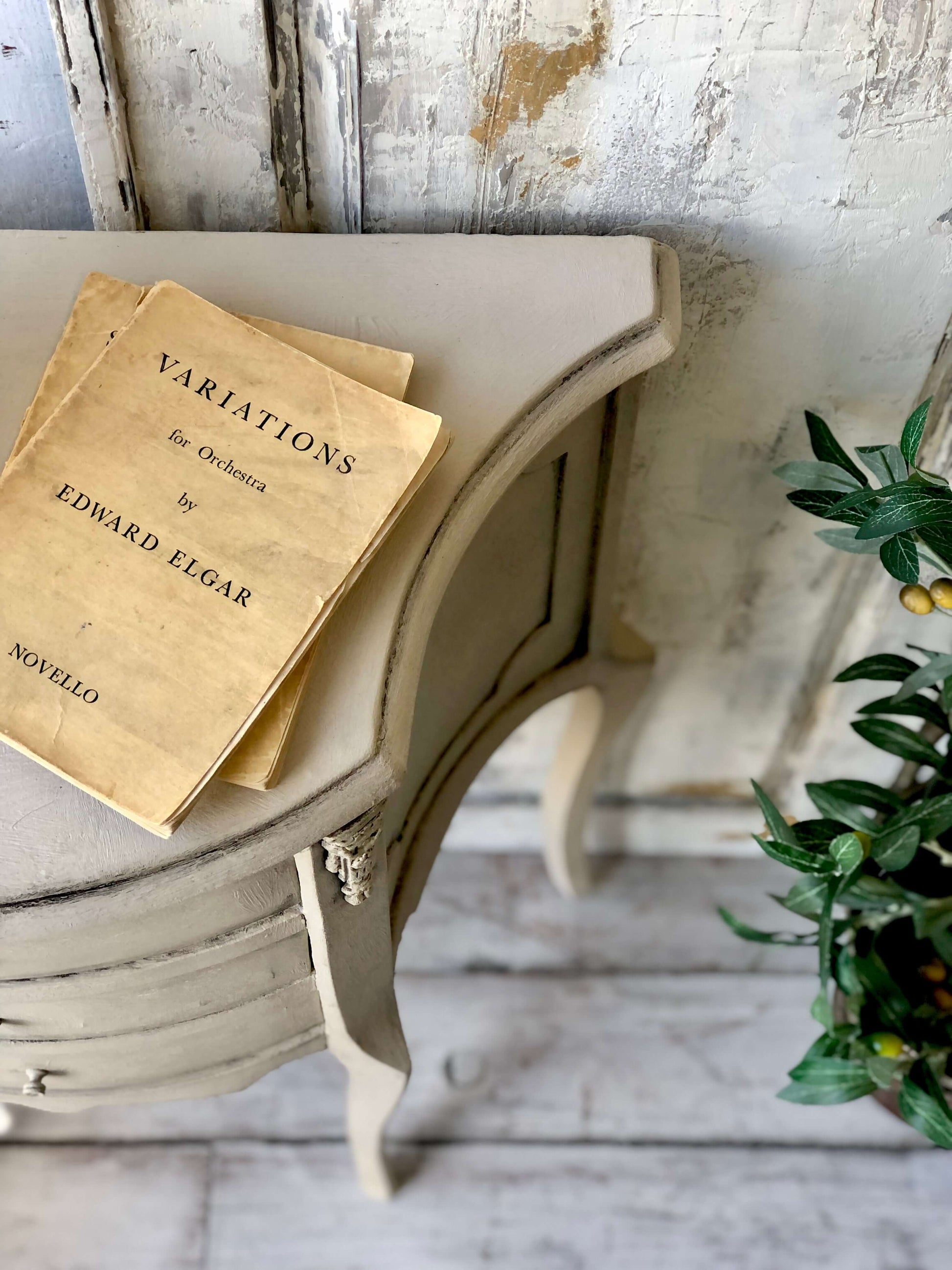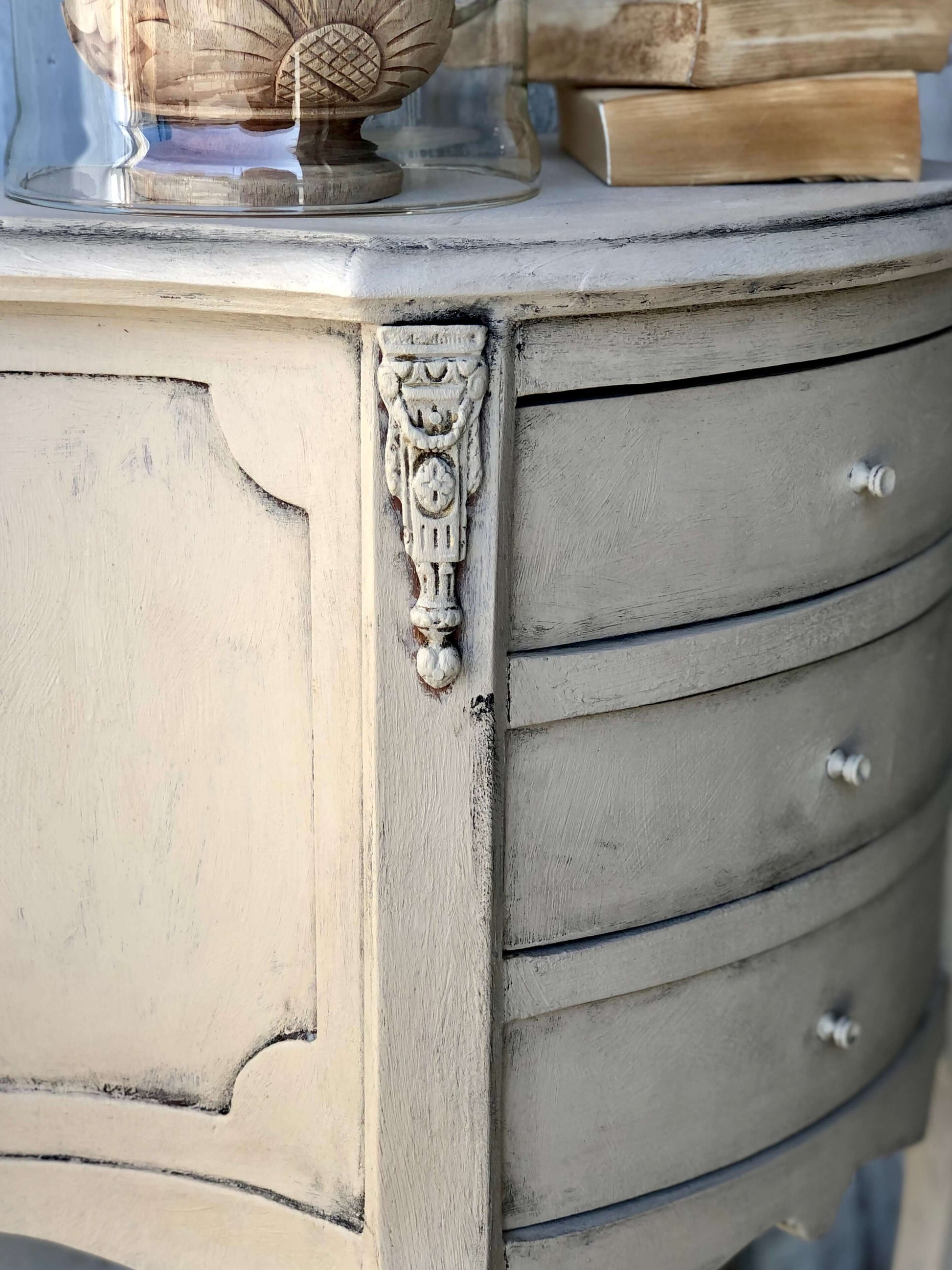 Hand painted with Annie Sloan Chalk Paint. Beautiful neutrals, with a faded grandeur feel. We have used Country Grey, and all the waxes.