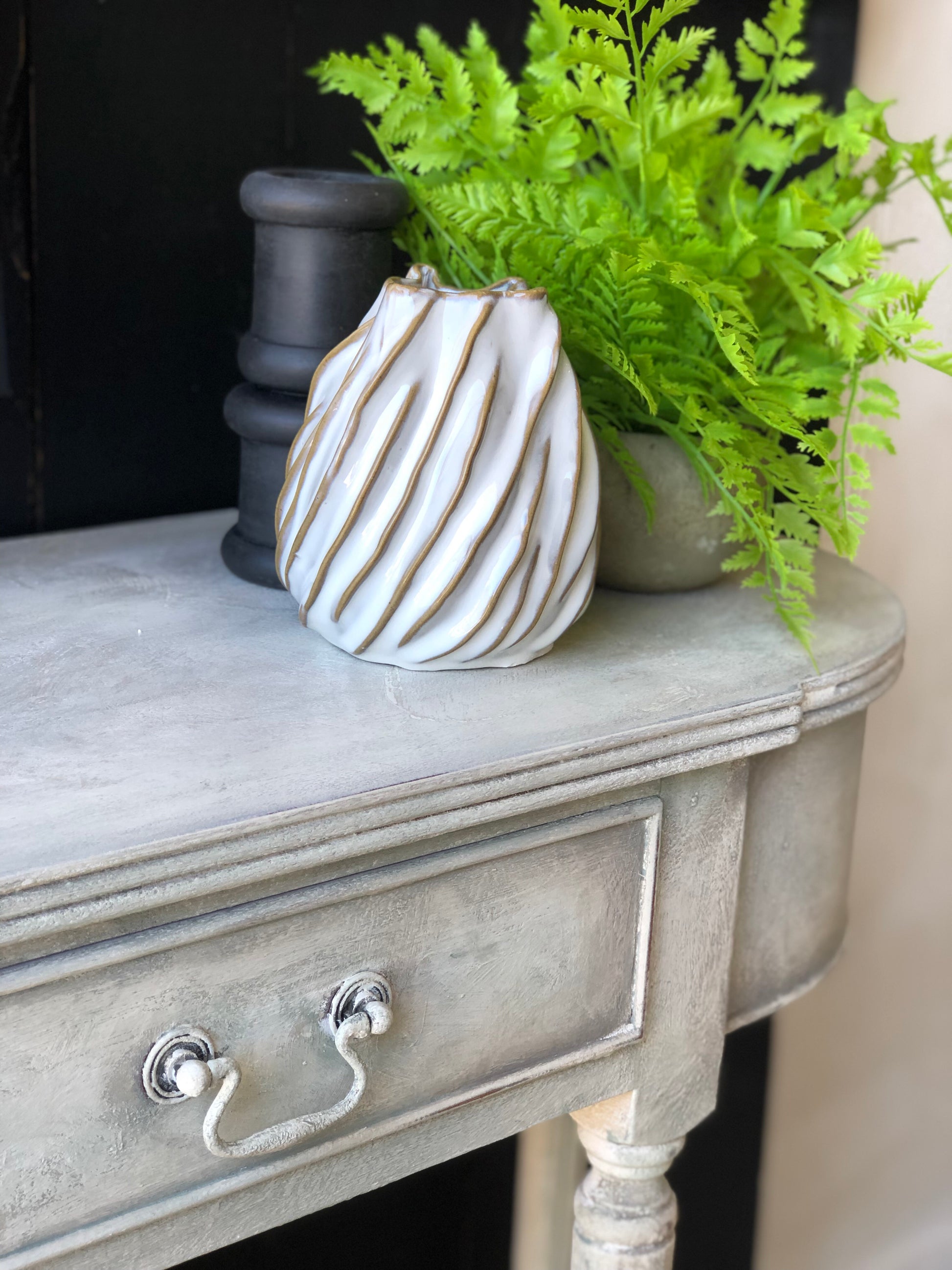 This Petit Console is absolutely gorgeous! Hand painted with Annie Sloan Chalk Paint, for a textured and soft patina. Elegant shape and bags of personality. Finished with a custom Annie Sloan wax.