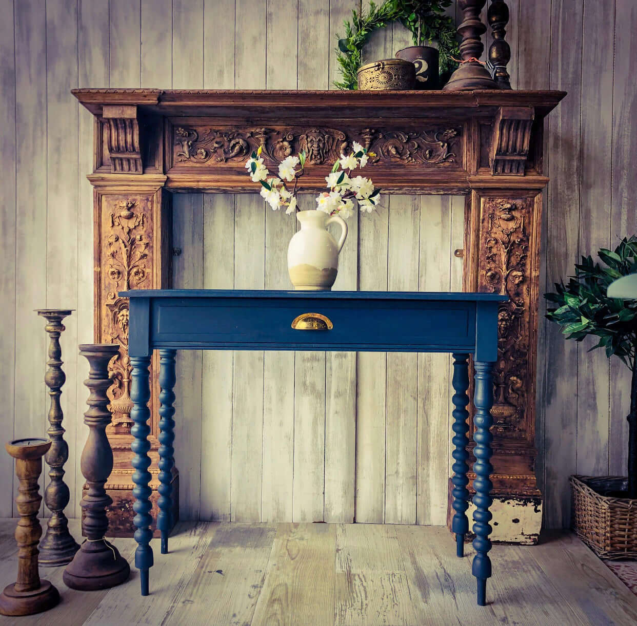 Hand painted with Annie Sloan Napoleonic Blue and Graphite mix finished with clear wax.