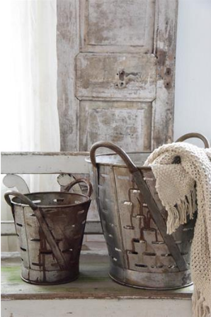 Olive baskets in set of 2 with a rust/zinc finish.