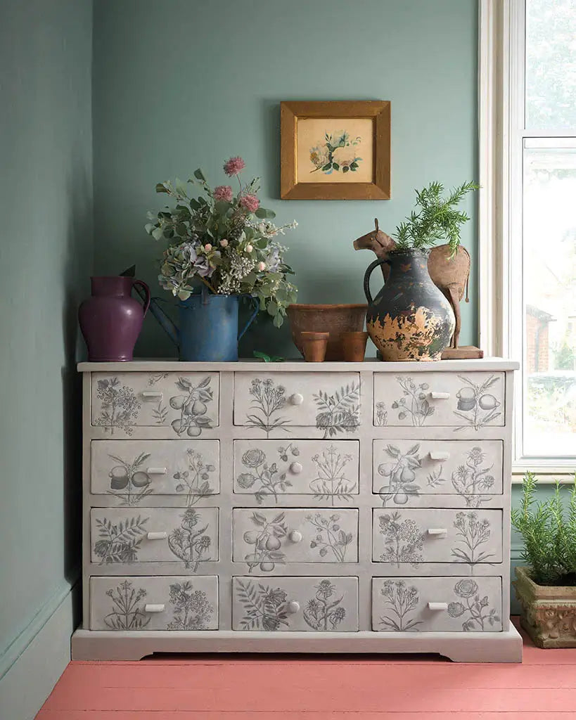 All the papers from the Annie Sloan with Royal Horticultural Society collaboration including the geometric designs and the flora and fauna have been printed on dyed tissue papers. They have been designed to work best with Chalk Paint® and Annie Sloan Image Medium.